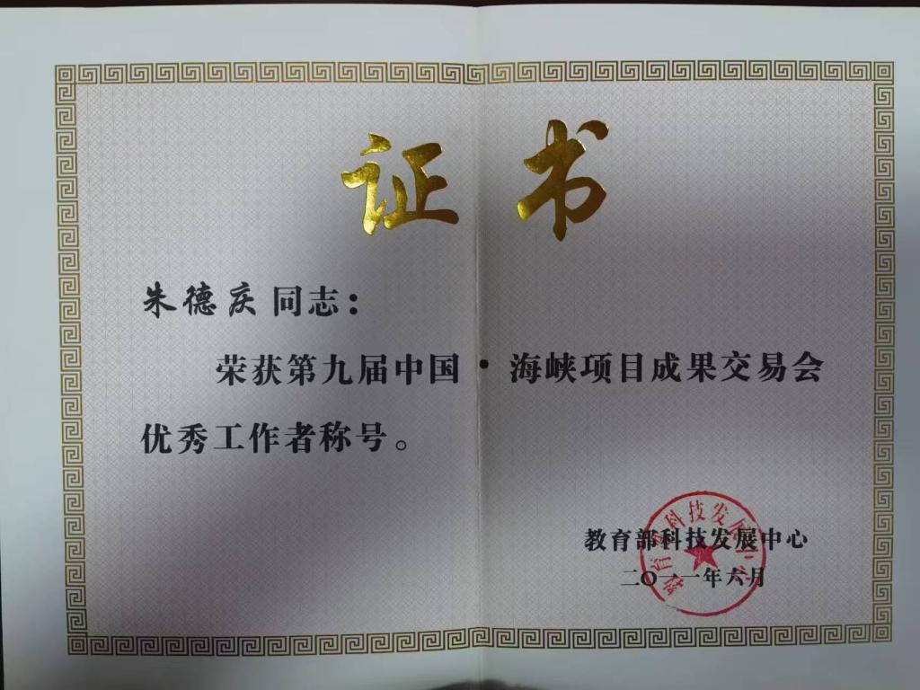 2011年6月:朱德庆教授获第九届中国海峡项目成果交易会优秀工作者称号